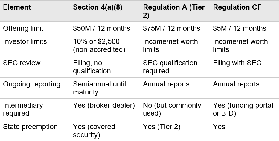 - House Section 4(a)(8) Retail Exemption — direct-to-retail issuance with disclosure requirements